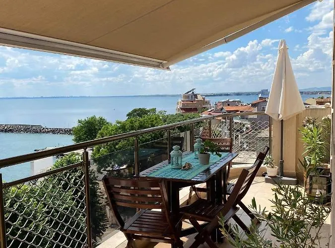 Old Houses of Pomorie architectural reserve에서 가까운 도보 거리에 있는 해변 Nadejda은 바다의 전경을 조망할 수 있는 객실을 제공합니다.